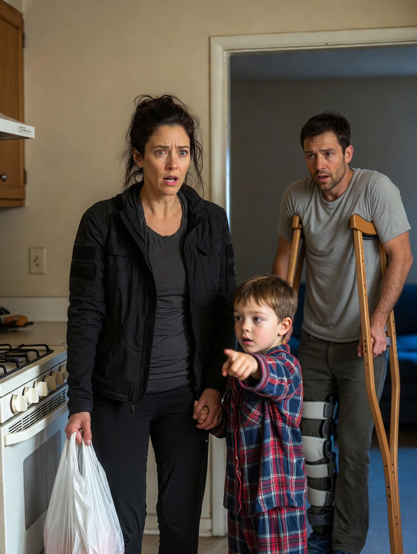 The air carried the sharp scent of lemon cleanser mixed with the comforting warmth of freshly baked bread, and the contrast struck me so violently that I halted in the doorway, convinced for a suspended second that exhaustion had delivered me into the wrong apartment. My first thought insisted that I had miscounted floors again after another brutal shift, while my second thought whispered that someone had broken into my home and rearranged my life with eerie politeness, yet both explanations collapsed when my gaze landed upon Oliver’s crayon drawing still taped crookedly to the refrigerator door beside my chipped ceramic mug. The living room looked unmistakably familiar yet disturbingly altered, because every scattered blanket had been folded with careful precision, every abandoned wrapper had vanished from sight, and the sink that usually overflowed with chaotic evidence of survival now gleamed with impossible emptiness.