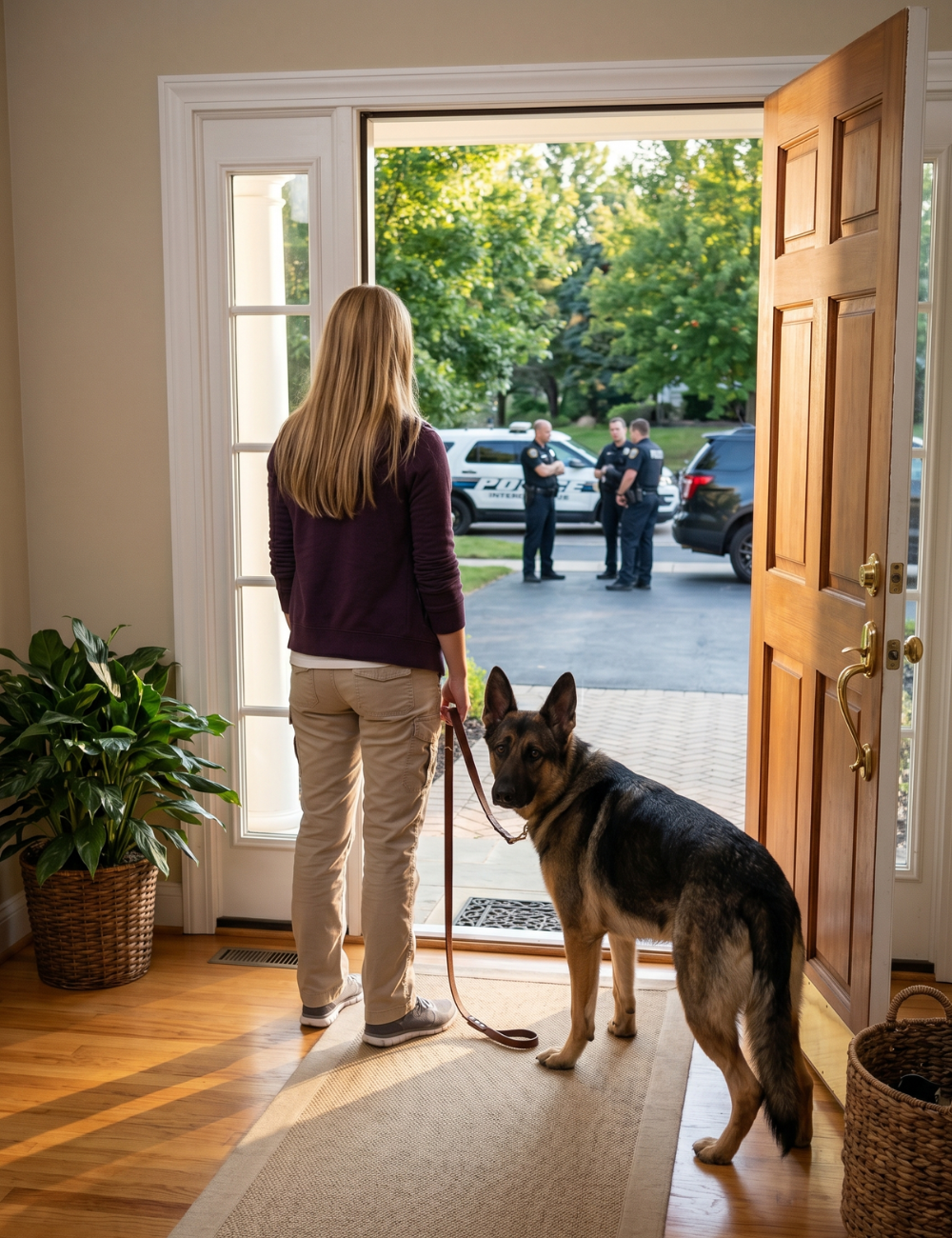 Yet Ranger refused to budge, his eyes locked outside. Then, at exactly 7:30 a.m., Laura’s phone rang. A calm voice from the county police department asked if she was inside her home and instructed her not to leave.