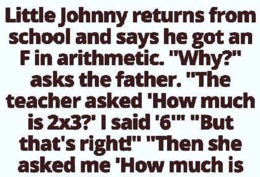 “The teacher asked ‘How much is 2×3?’ and I said ‘6’”