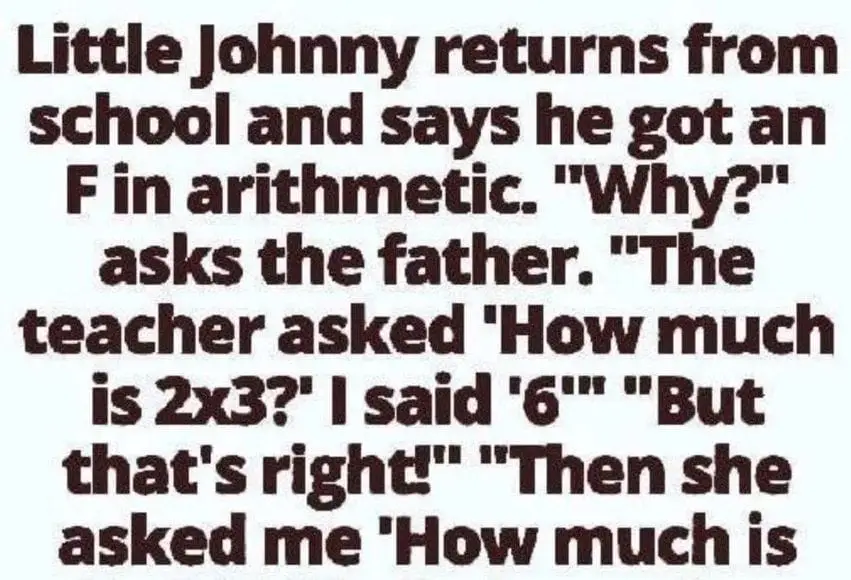 Then she asked me, ‘What’s 2 times 3.’”The father then replies, ”What the fuck is the difference?”