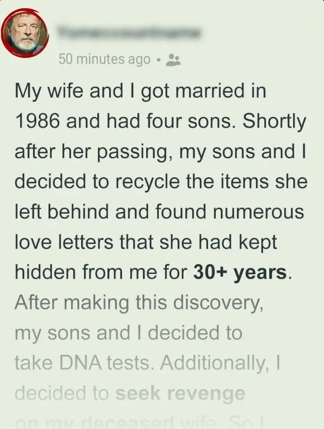 A man opened up on Reddit after discovering that his deceased wife had been cheating on him for more than three decades. He devised a plan to take revenge on his late wife after learning of her betrayal.