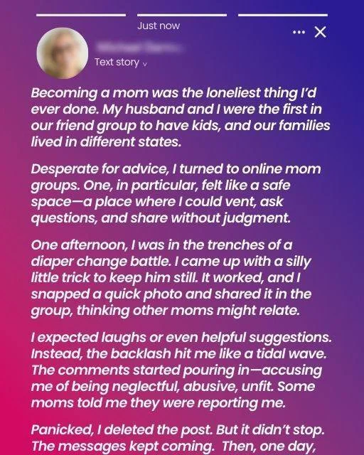 I felt ashamed, even though I’d done nothing wrong. But then, one evening, as I was scrolling mindlessly through my phone, I stumbled across a post from another mom. She had shared her own experience of being mom-shamed online, about how one innocent post had spiraled into a nightmare.