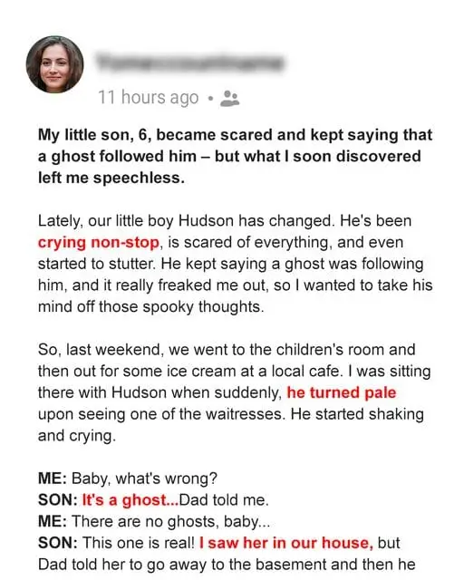 He murmured, “It’s the ghost, mommy,” in between sobbing. The one about whom I told you!” His assertion that she was the spirit that had been pursuing him alarmed me even more.