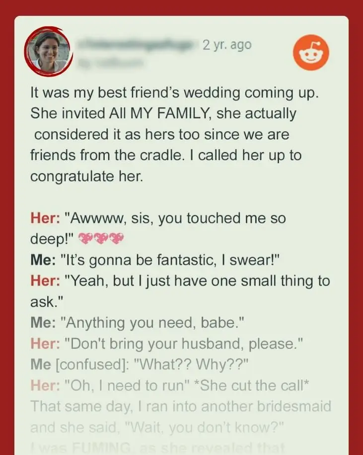 Why would my husband not be invited to the wedding? Especially because Jade had been the one who introduced us in the first place. And she had played a pivotal role in our wedding.