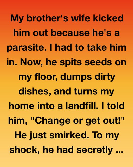 My brother’s wife kicked him out because he’s a parasite. I had to take him in. Now, he spits seeds on my floor, dumps dirty dishes, and turns my home into a landfill.