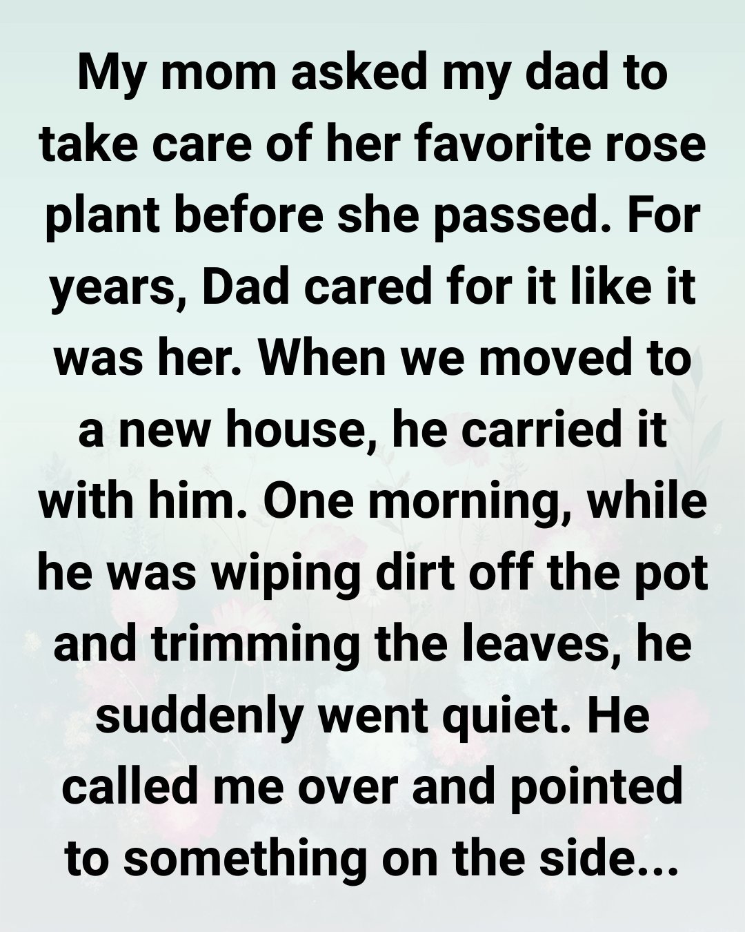 My dad cried quietly that morning, not out of grief but out of gratitude. He thought he had been keeping her plant alive all these years, but really, he had been nurturing their love—still blooming, still rooted, still alive. Now, whenever I see that rose, I’m reminded that love doesn’t always shout or sparkle.
