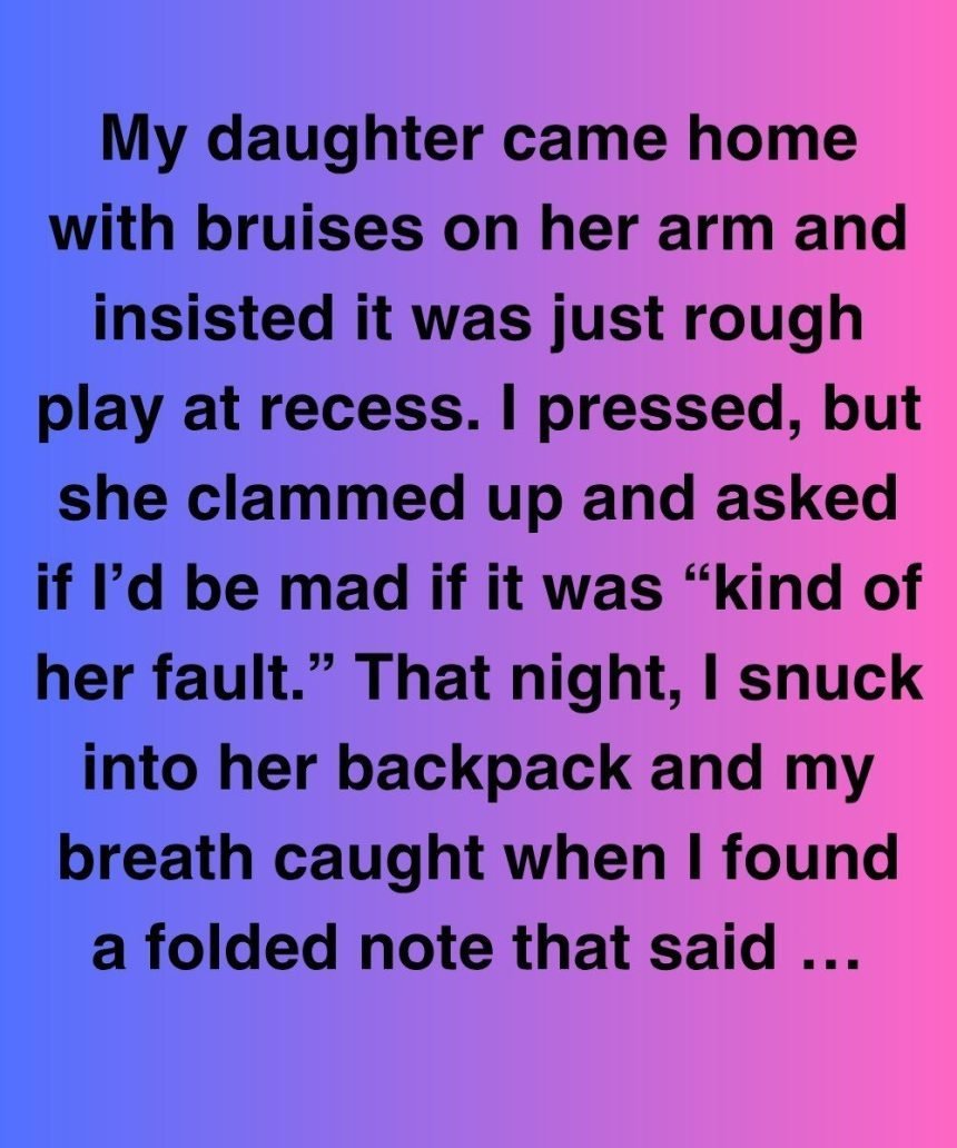 My daughter came home with bruises. She said it was “rough play,” but later I found a note in her backpack: “Tell anyone and your dad goes to jail.”