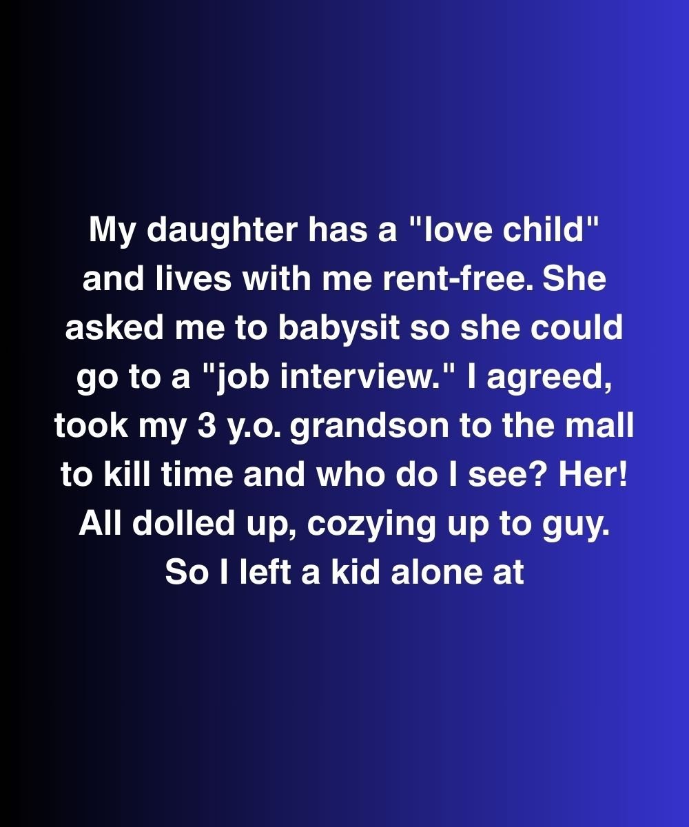 My daughter has a “love child” and lives with me rent-free. She asked me to babysit so she could go to a “job interview.” I agreed, took my 3 y.o. grandson to the mall to kill time and who do I see?