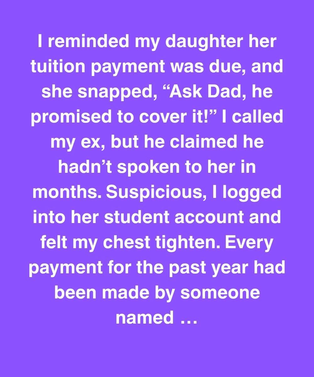 I reminded my daughter her tuition payment was due, and she snapped, “Ask Dad, he promised to cover it!” I called my ex, but he claimed he hadn’t spoken to her in months. Suspicious, I logged into her student account and felt my chest tighten. Every payment for the past year had been made by someone named N. Roque.