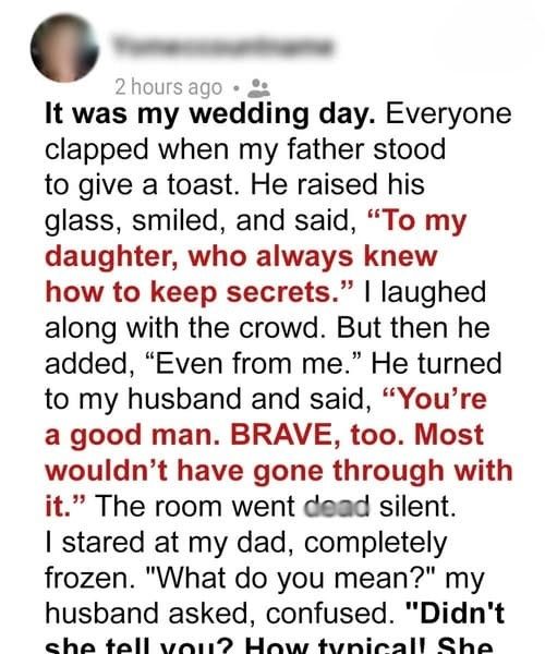 He raised his glass and said, “To my daughter, who always knew how to keep secrets.”