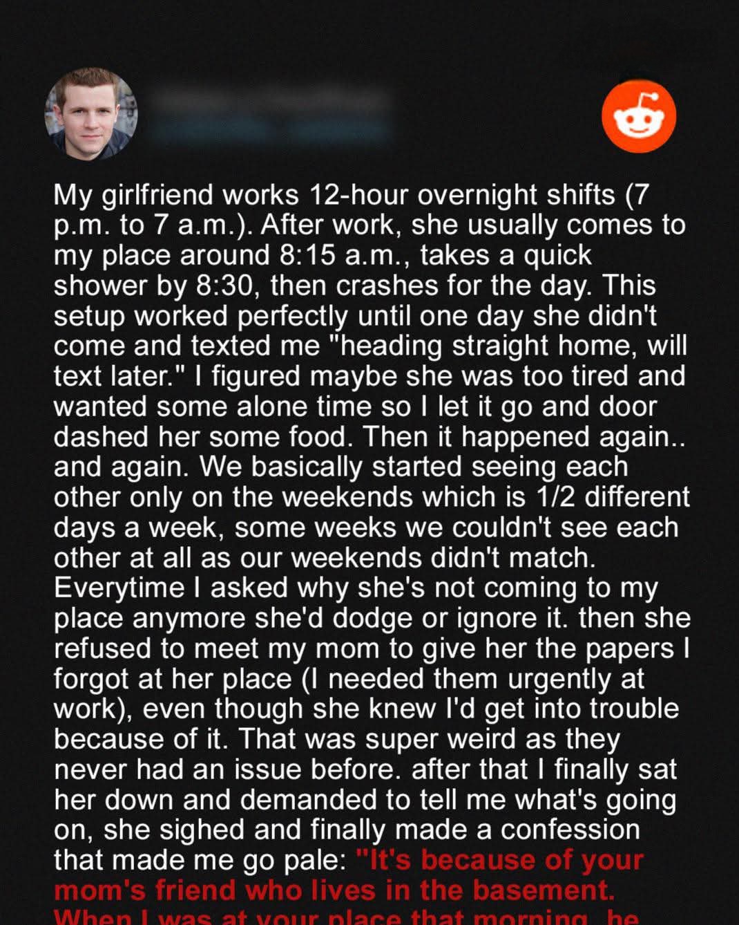 My girlfriend, Rachel, works brutal 12-hour overnight shifts at the hospital from 7 p.m. to 7 a.m. Most mornings, she’d come straight to my mom’s place after work, until she suddenly stopped. I made a big decision when I discovered the truth behind her changed behavior.