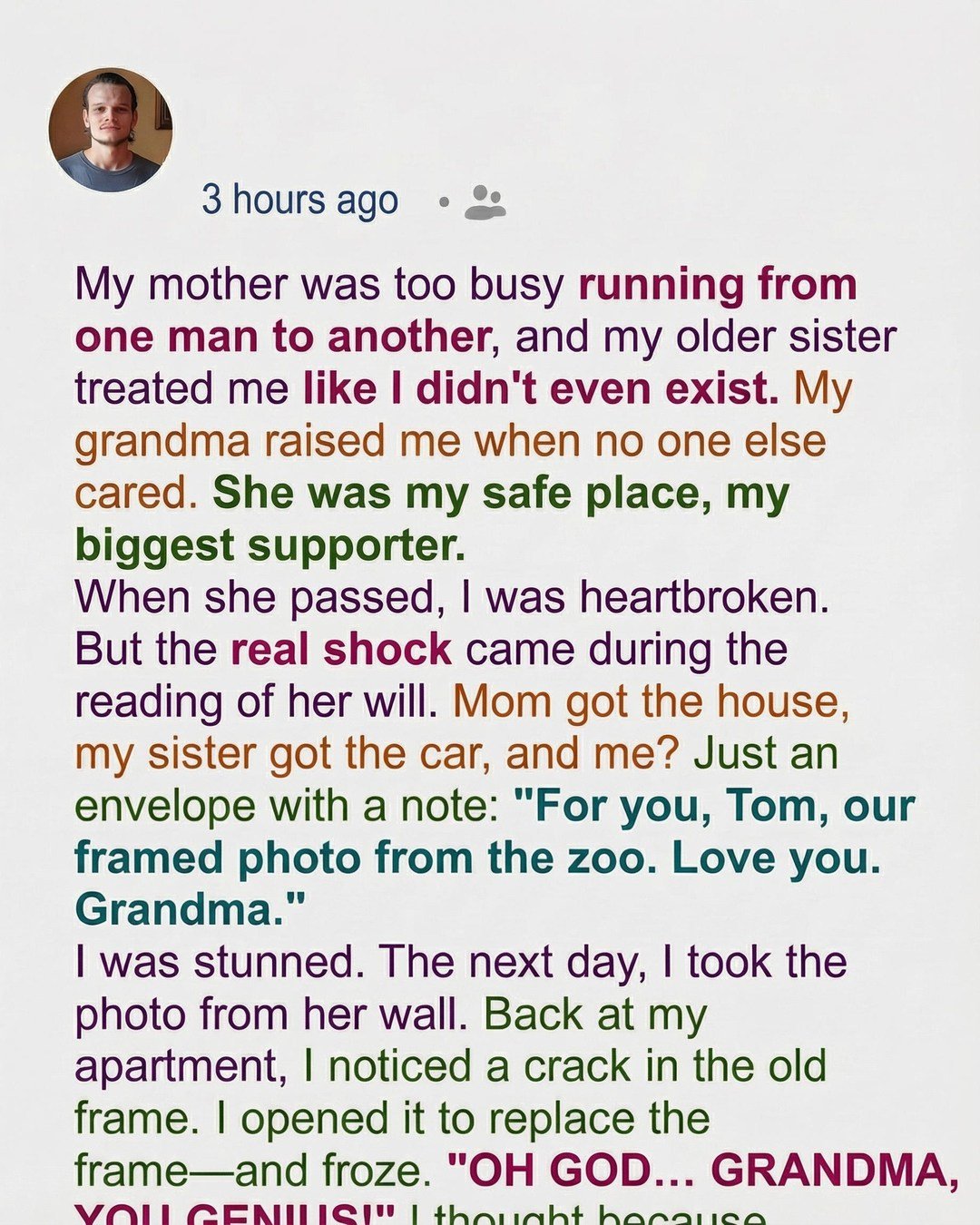 Months later, even my sister found her way back, asking for support during a difficult moment in her life. Instead of turning her away, I offered her a place to participate and contribute, just as our grandmother would have done. Standing inside the home that now honored her memory, I realized her final lesson was hidden in that framed zoo photo: the most valuable inheritance isn’t a house or a car—it’s the ability to create a place where others feel safe, seen, and encouraged.
