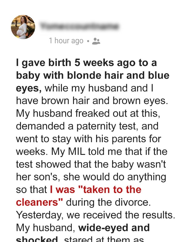 “Alex, babies can have lighter hair and eyes at birth,” I explained, trying to keep my voice calm even though my heart pounded. “It doesn’t mean anything. Her features will probably change over time.”