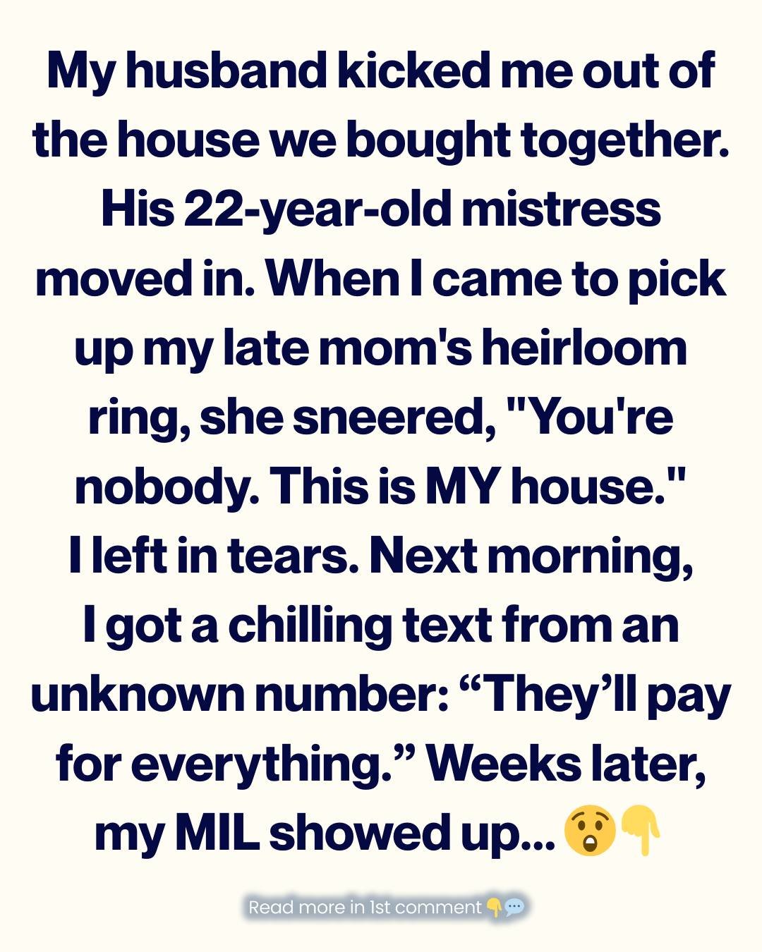 Four exhausting months later, the court ruled in my favor: the house, my belongings, my mother’s ring—everything was returned to me. My ex-husband lost the home he had tried to replace me in. His mistress vanished as quickly as she had appeared.