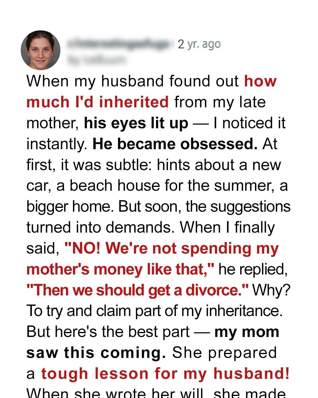 My Husband Filed for Divorce After My Inheritance—But My Late Mother Outsmarted Him Completely