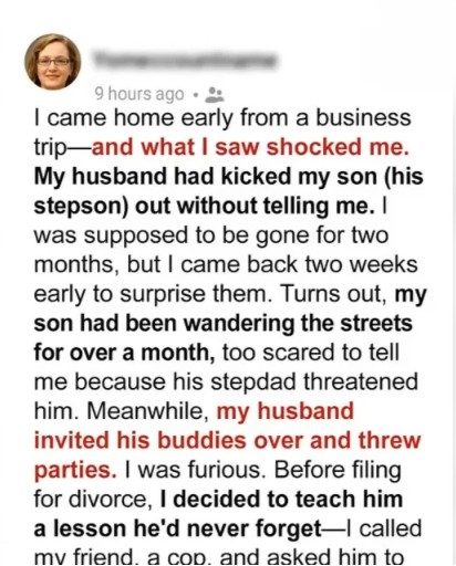 Caleb’s father passed away years ago, and I never thought I’d trust another man like Travis. At first, Travis was polite but distant with Caleb, as if unsure. While I was away, Travis threw my son out and ignored his suffering. Meanwhile, he partied with his friends, pretending nothing was wrong.