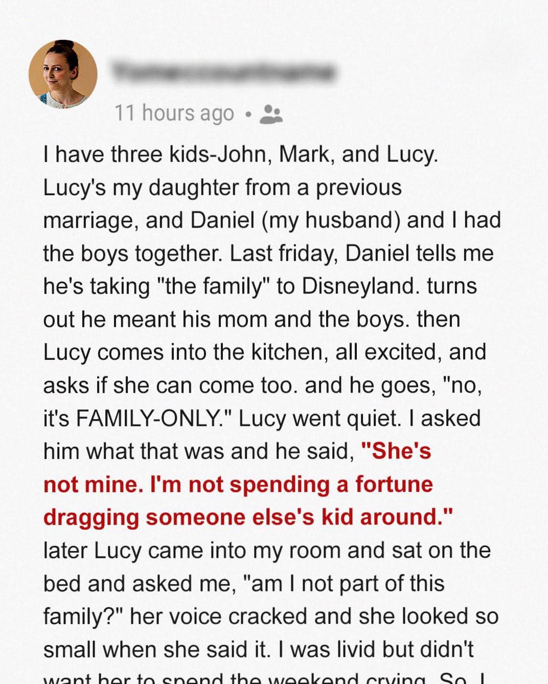 I didn’t expect my husband to show me a side to him I didn’t know until he left my daughter behind because she wasn’t “family.” This rift threatened our lovely family unit until someone dear stepped in.