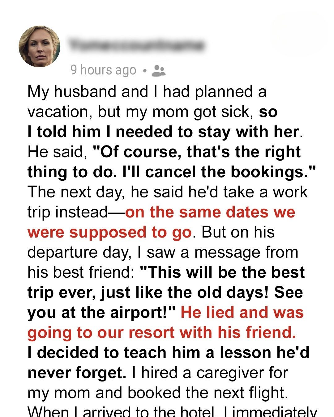 My heart thudded. I read it again, then a third time. The words didn’t change. He hadn’t canceled anything. He was going on our vacation… with Chase.