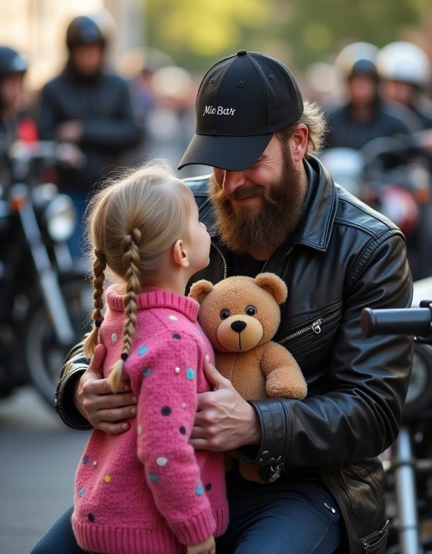 “Mom! It’s Tank!” she squealed and bolted from the car. Tank turned, recognized her instantly, and his weathered face broke into the warmest smile. He lifted her, spinning while fellow riders clapped and