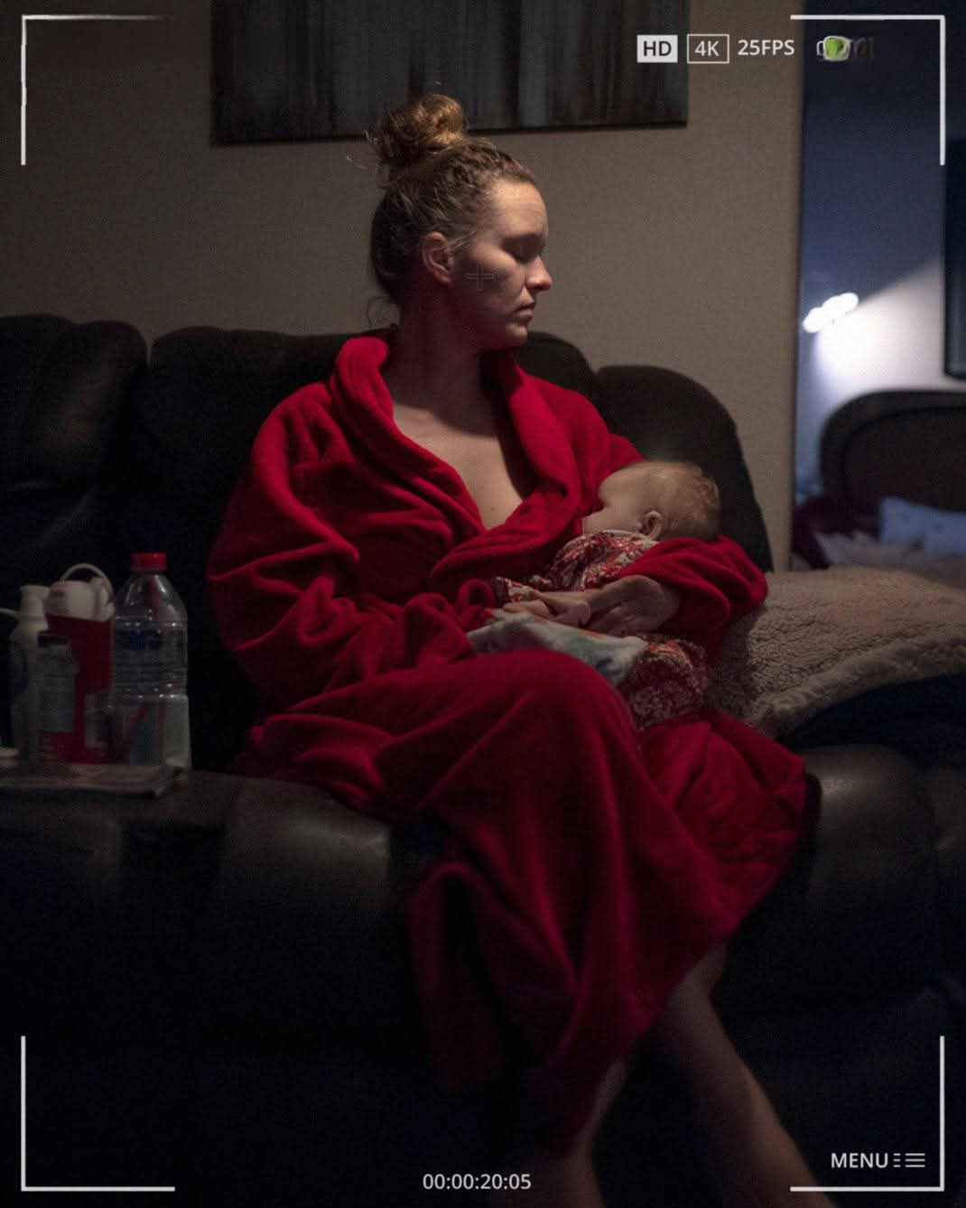 It was a screenshot from the baby monitor showing me in the same ratty robe I was wearing at that moment, breastfeeding Emma.