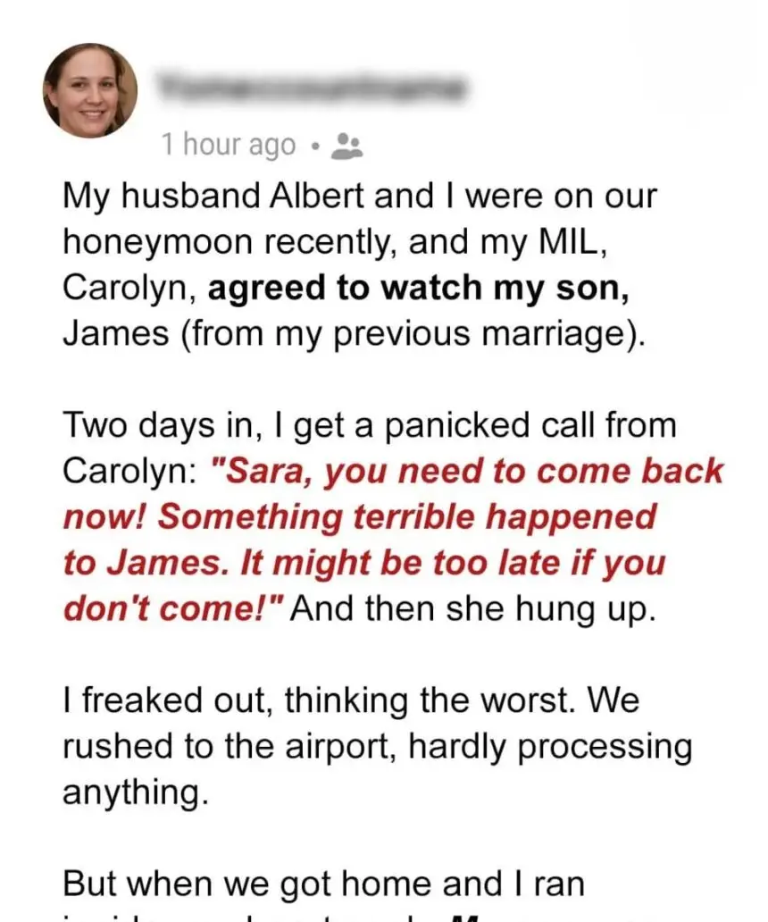 “Sara, you need to come home immediately,” Carolyn’s voice crackled through the line, sharp and trembling. “Something terrible has happened to James. I think… I think it might be too late if you don’t come now.”