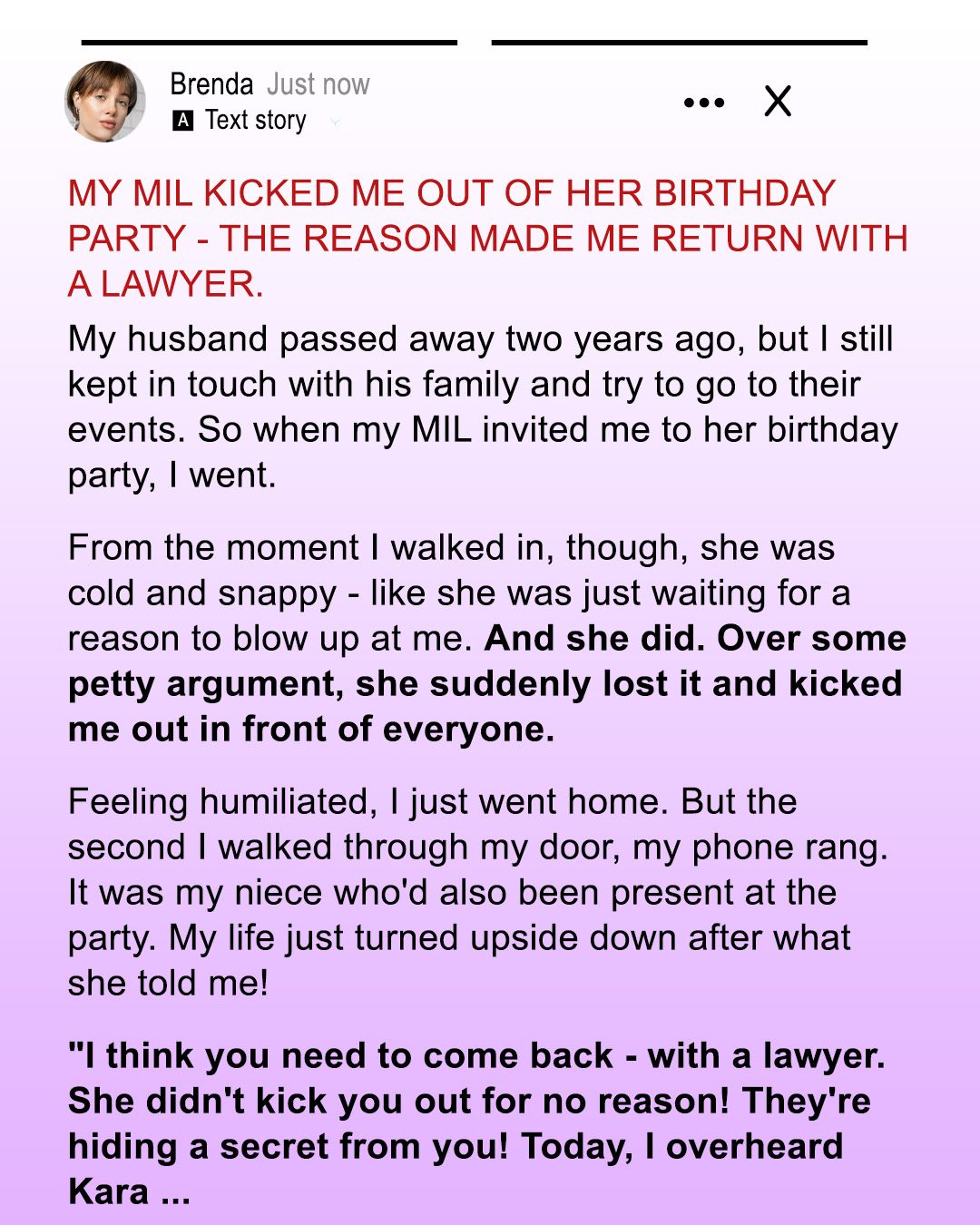 I stood in front of Kara’s sprawling home, clutching the small gift bag I’d brought for her birthday party. The knot in my stomach grew tighter. It had been two years since Mark’s death, and his mother, Kara, had barely acknowledged me. Her coldness stung, but I always made an effort to attend family events whenever Mark’s siblings invited me, even though I wasn’t technically part of their family anymore.