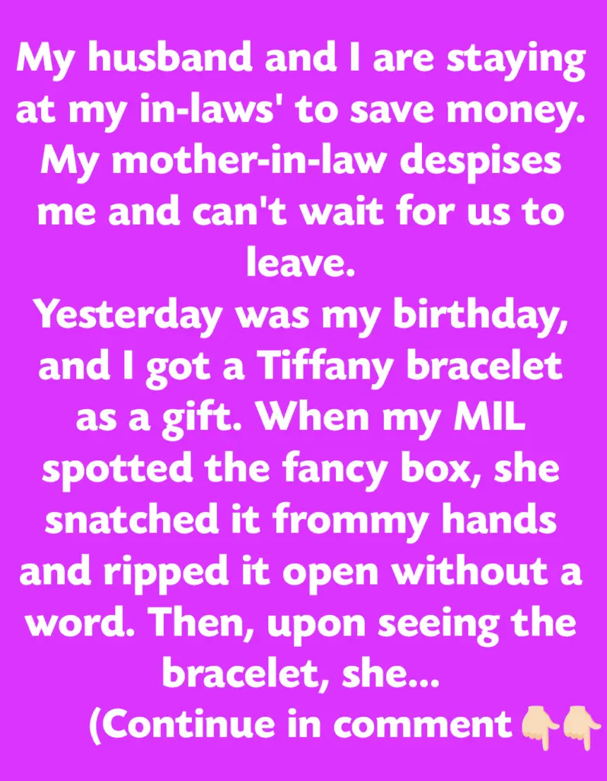 Yesterday was my birthday, and I received a Tiffany bracelet as a gift. When my mother-in-law spotted the fancy box, she snatched it from my hands and ripped it open without a word. Upon seeing the bracelet, she erupted, shouting, ‘How dare he spend money like that while living in MY house?