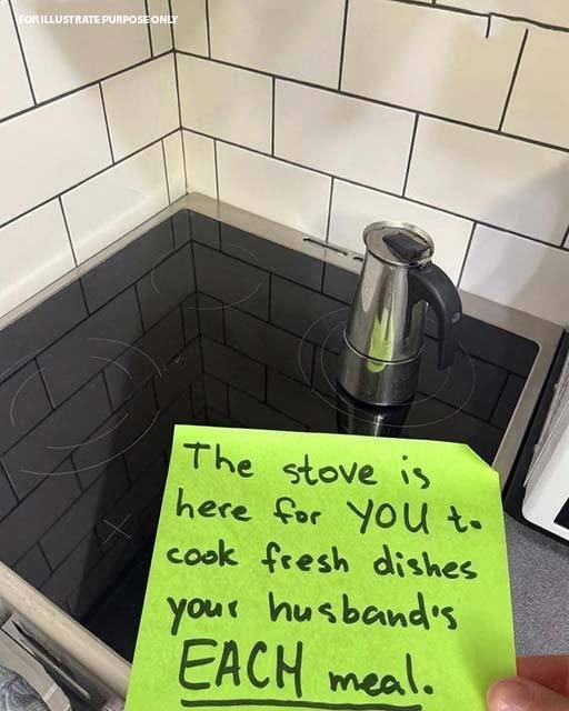 I saw a label on the stove: “I’m for cooking meals for your husband.” One fresh dish per meal.”