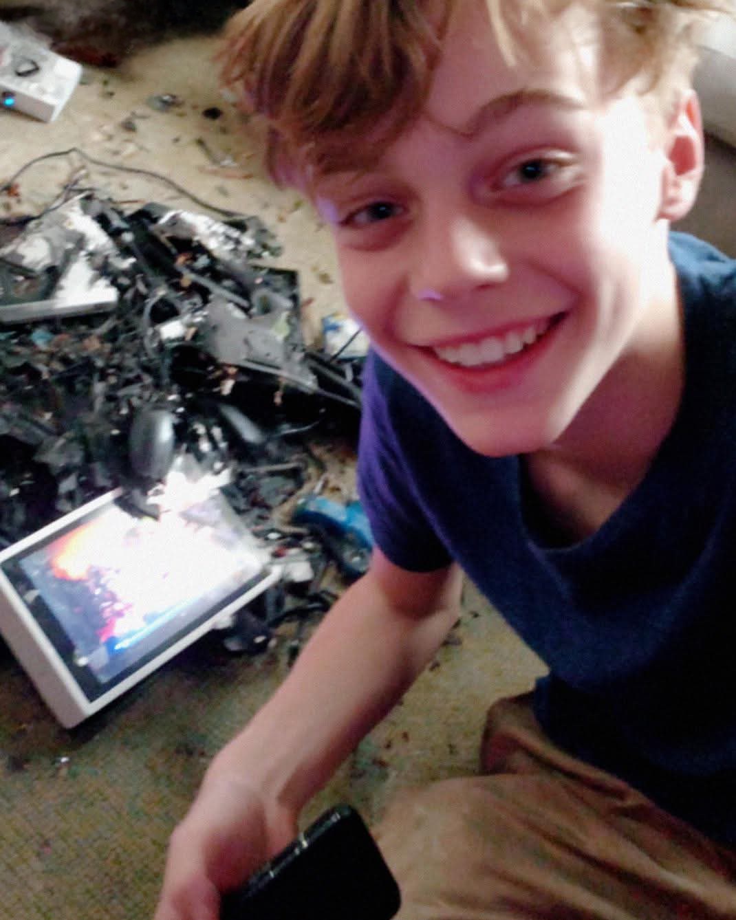 Jake shrugged and actually laughed. “Yeah, so what? I saw this video on TikTok where this guy throws a console down the stairs, and it was hilarious. I wanted to try it.”
