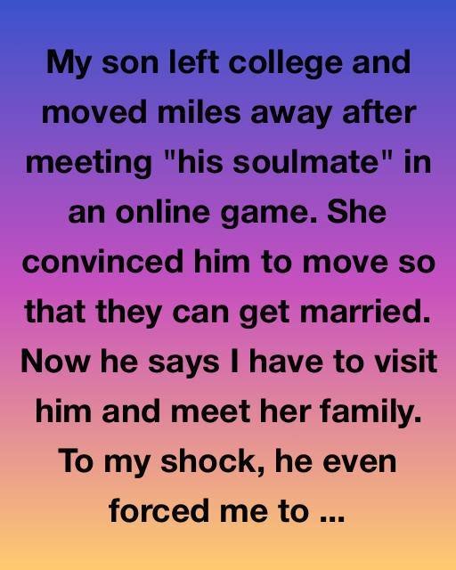 My son left college and moved miles away after meeting “his soulmate” in an online game. She convinced him to move so that they can get married. Now he says I have to visit him and meet her family.