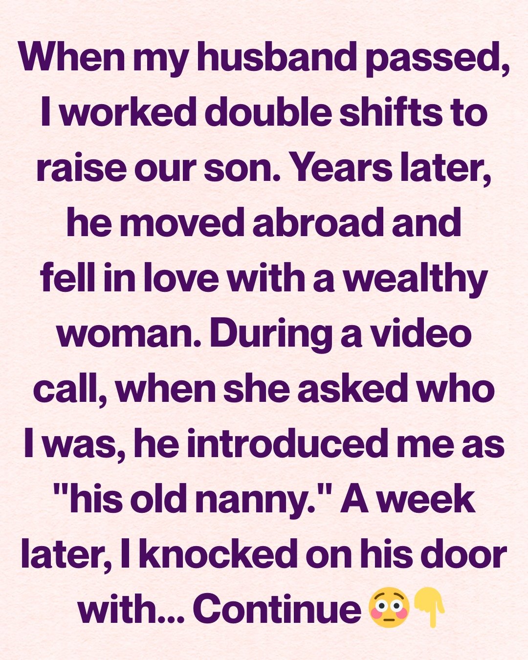 Years passed. He grew up. He got a scholarship. Then a job abroad. I was proud in that quiet, aching way mothers are when they let go because they have to. We talked less, but I told myself that was normal. He was building a life. I didn’t want to be a weight.