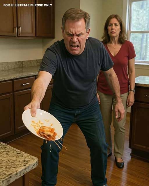 Before she could finish, he yanked the container from her hands and flung it to the floor. The lasagna splattered across the tiles.