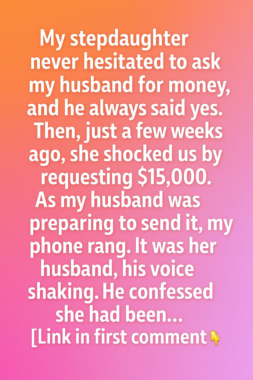 My stepdaughter never hesitated to ask my husband for money, and he always said yes. It started with small amounts — a little help with groceries here, a car repair there. I didn’t mind at first because family supports each other.