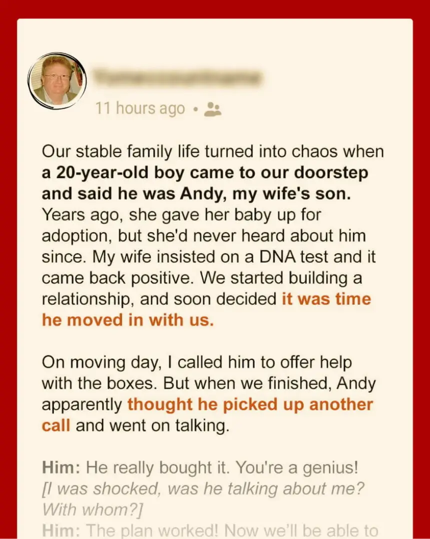 A son from a past Nina had never spoken of, a secret buried so deep it was almost mythical. Still grappling with the revelation, I invited Andy inside, my mind racing with questions.