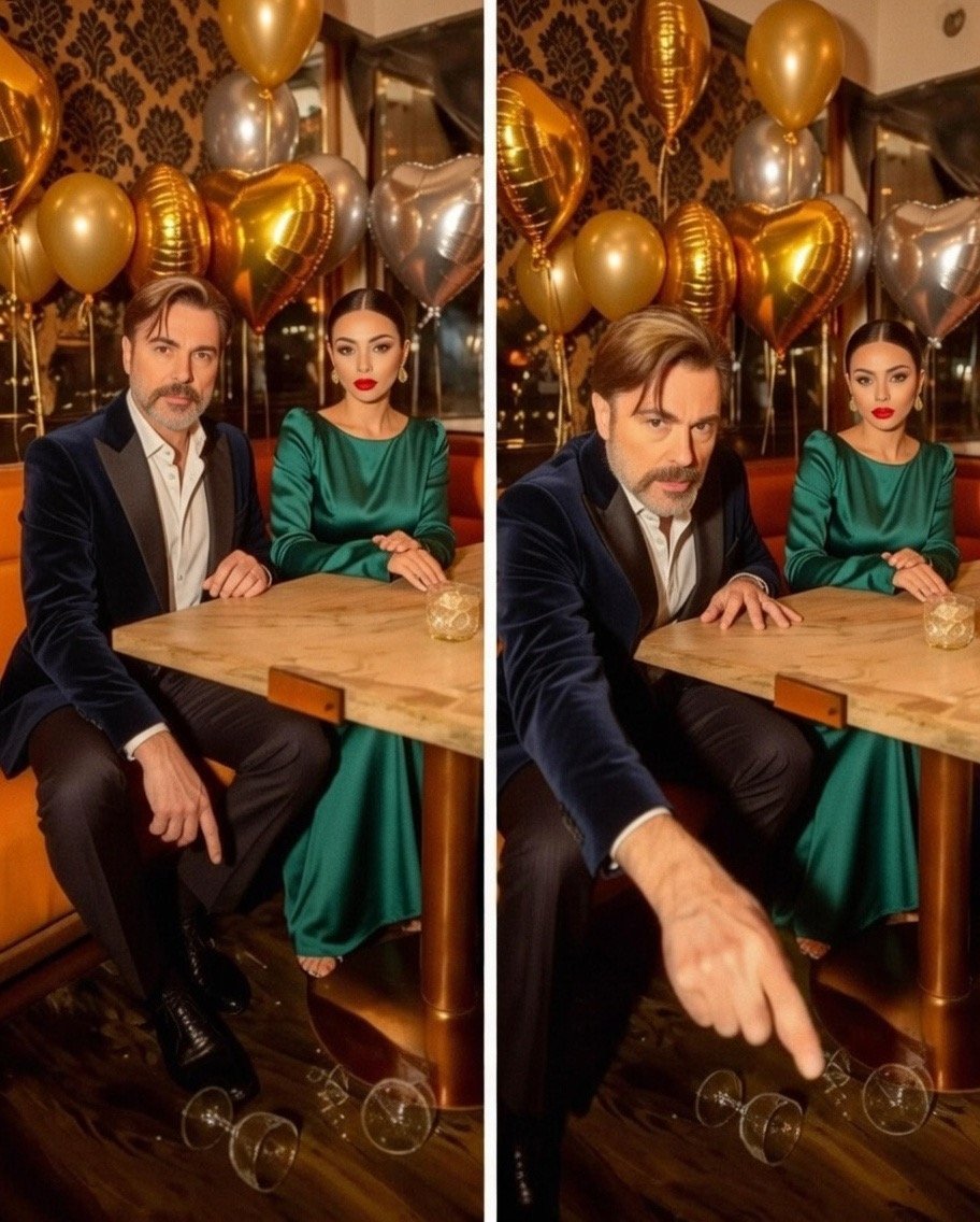 Then, deliberately, he knocked it over with the back of his hand. Champagne splashed across the table and onto the floor. “Look what you did!” he shouted.