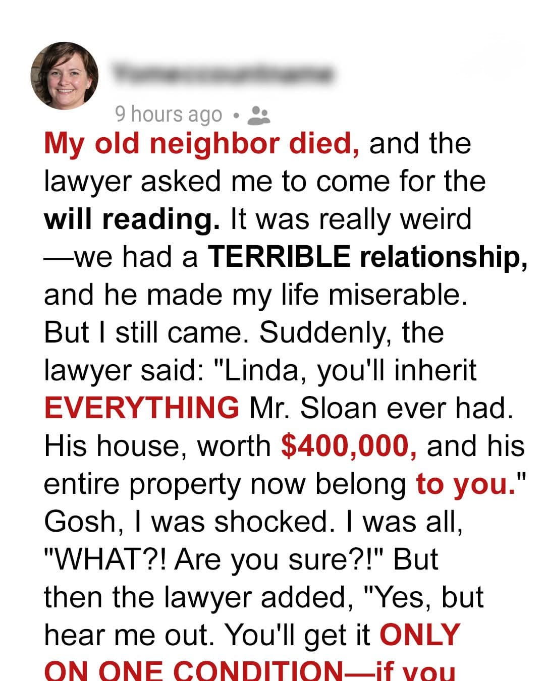 “Linda, you inherit Mr. Sloan’s house. The entire property.”