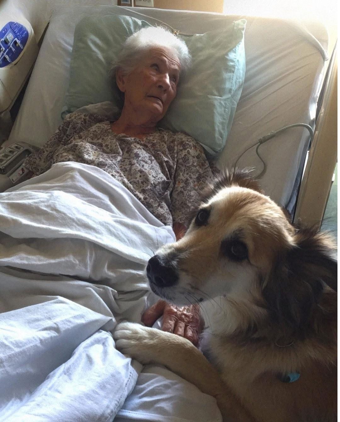 Buddy sat next to me, whining softly, licking her hand as if trying to wake her up. The sound he made was strange, like he was grieving for someone he’d lost. Then her eyes opened for just a split second.