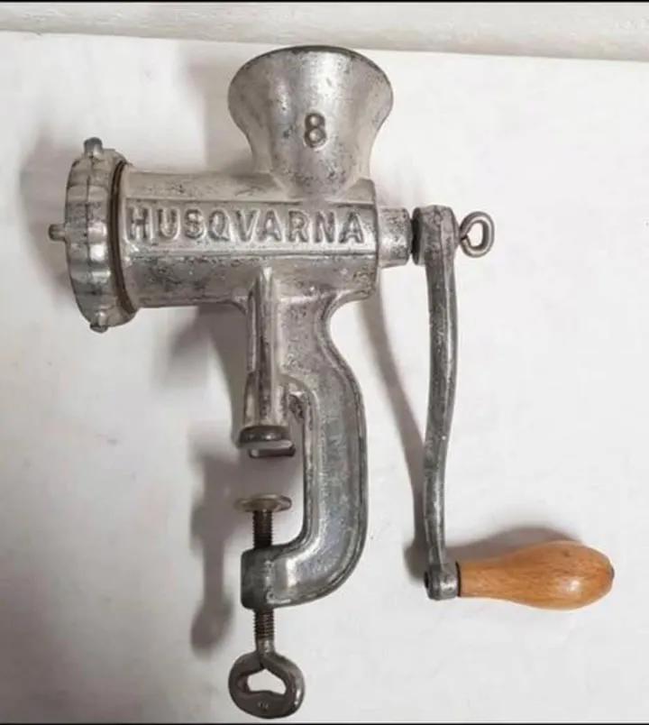 This item was called a ‘meat mincer’ and has a fascinating history. It was used in the UK for mincing and mixing raw or cooked meat, fish, vegetables, and more. At one time, this was a popular household item. The item came into prominence in the nineteenth century when Karl Drais invented the very first version of it. Initially, meat grinders were cranked with their hands, pushing meat through a metal plate with small holes which resulted in small strands of flesh.