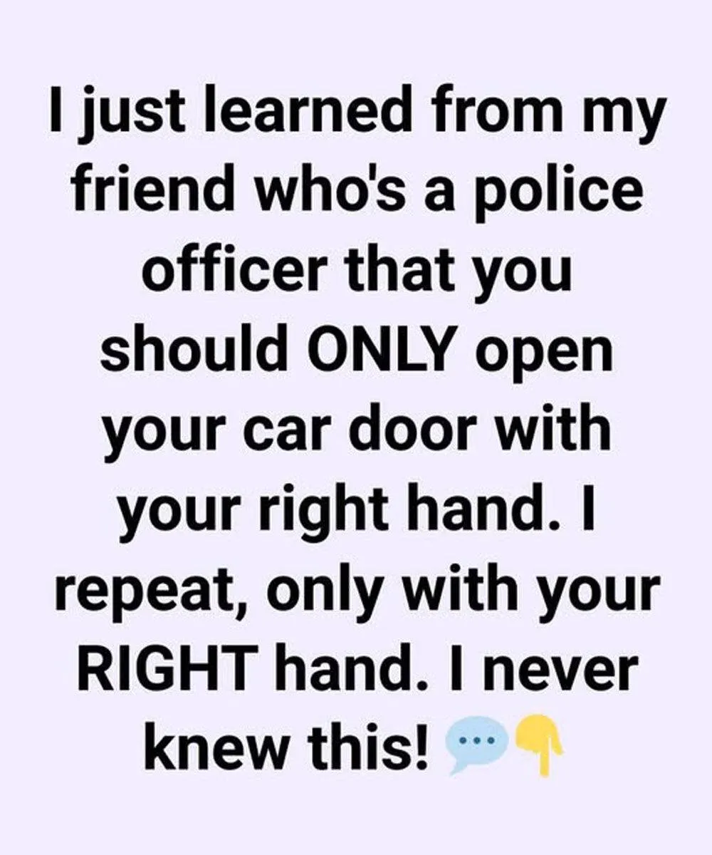 I never used to think twice about how I opened my door, but now it’s a ritual—one that reminds me that safety often begins with the smallest, quietest choices. Reach with your right, and you just might save a life.