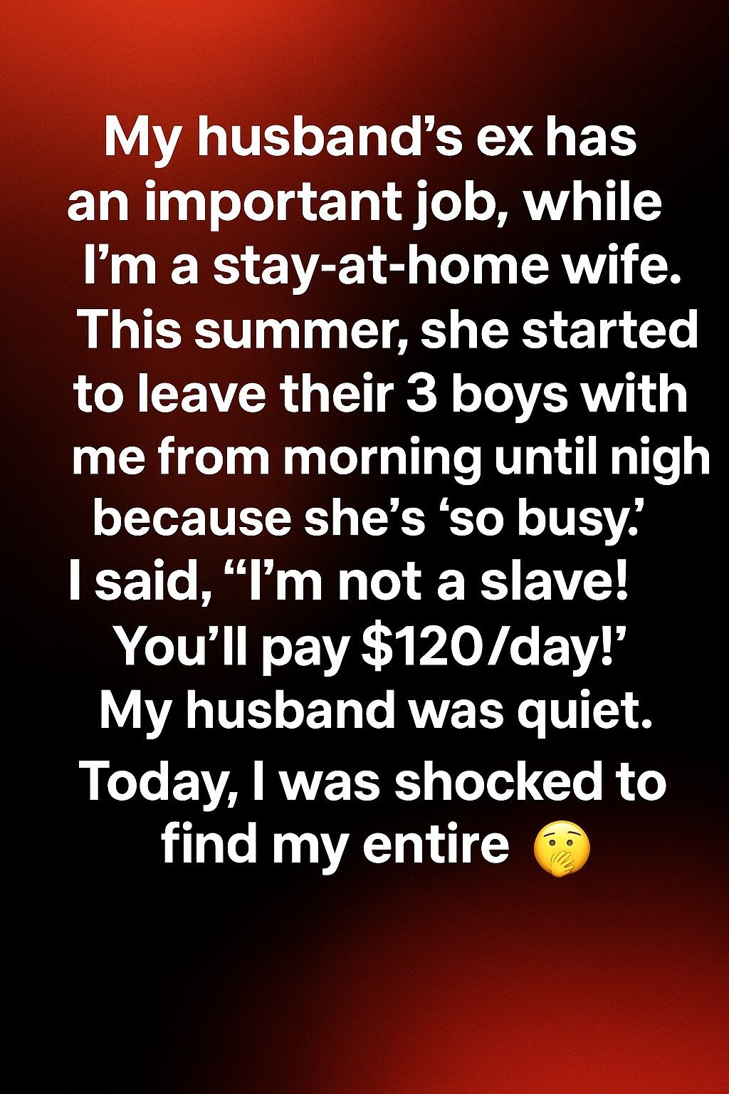 My husband’s ex began leaving their three boys with me every morning, saying her job kept her too busy. At first, I tried to help, telling myself it was temporary, but soon it felt like I was suddenly responsible for full-time childcare without agreeing to it. I care about the boys, but I also respect my own time and routines at home.
