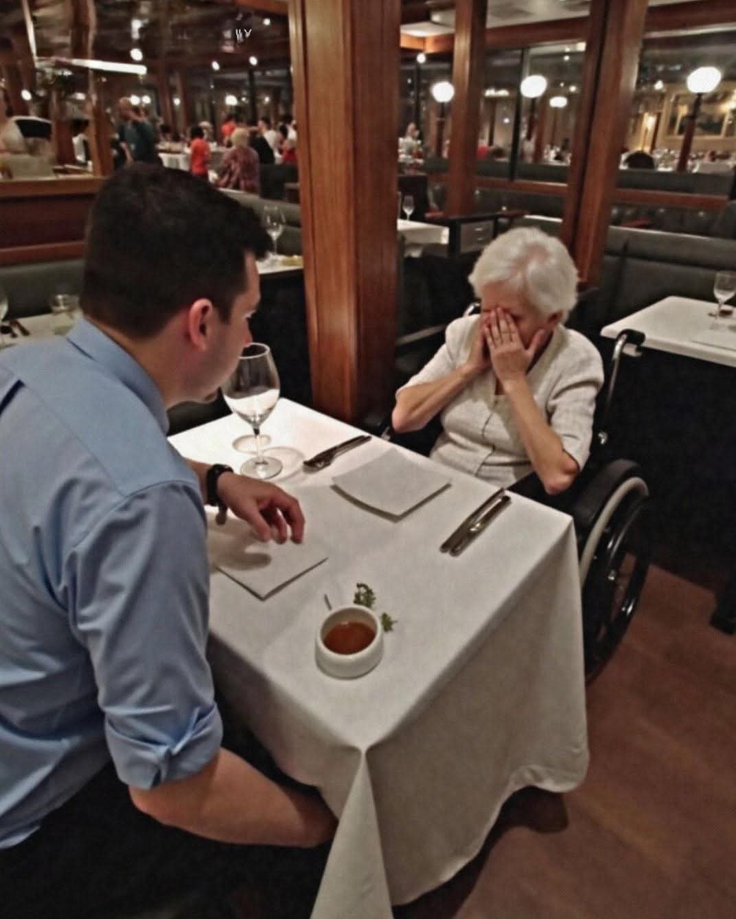 A young man took his disabled mother to a restaurant but ignored her until she dropped her water glass. He scolded her for it, making her cry, and the owner stepped up angrily and did something surprising.