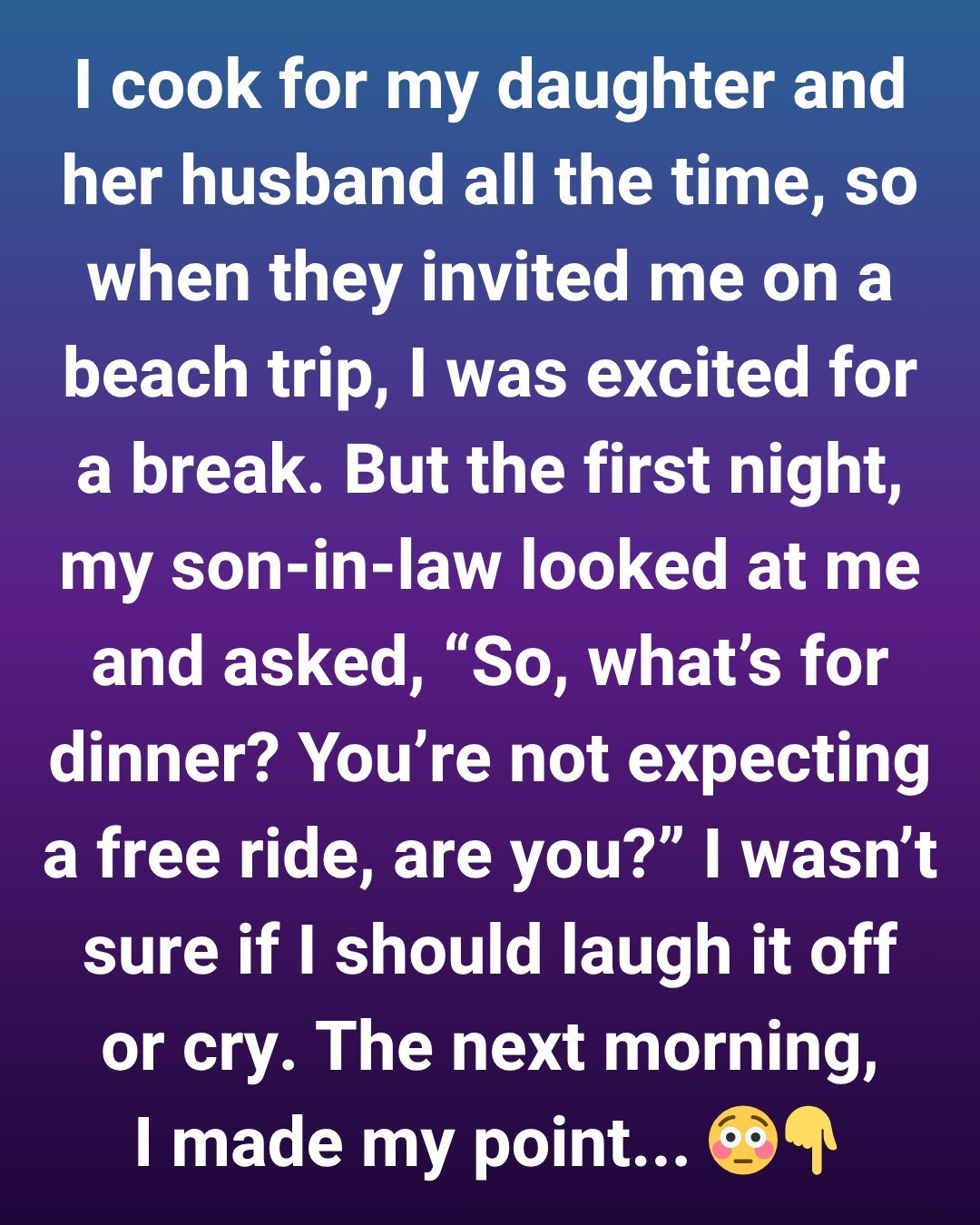 I love cooking for my daughter and her husband. Every Sunday, I bring over home-cooked meals — soups, casseroles, and her favorite lemon pie. So when they invited me on a beach trip, I was thrilled.