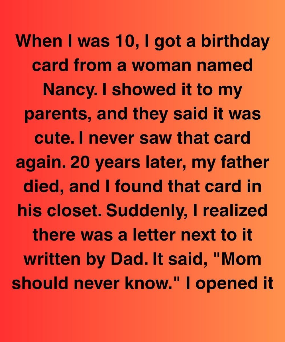 20 years later, my father died, and I found that card in his closet. Suddenly, I realized there was a letter next to it written by Dad. It said, “Mom should never know.”