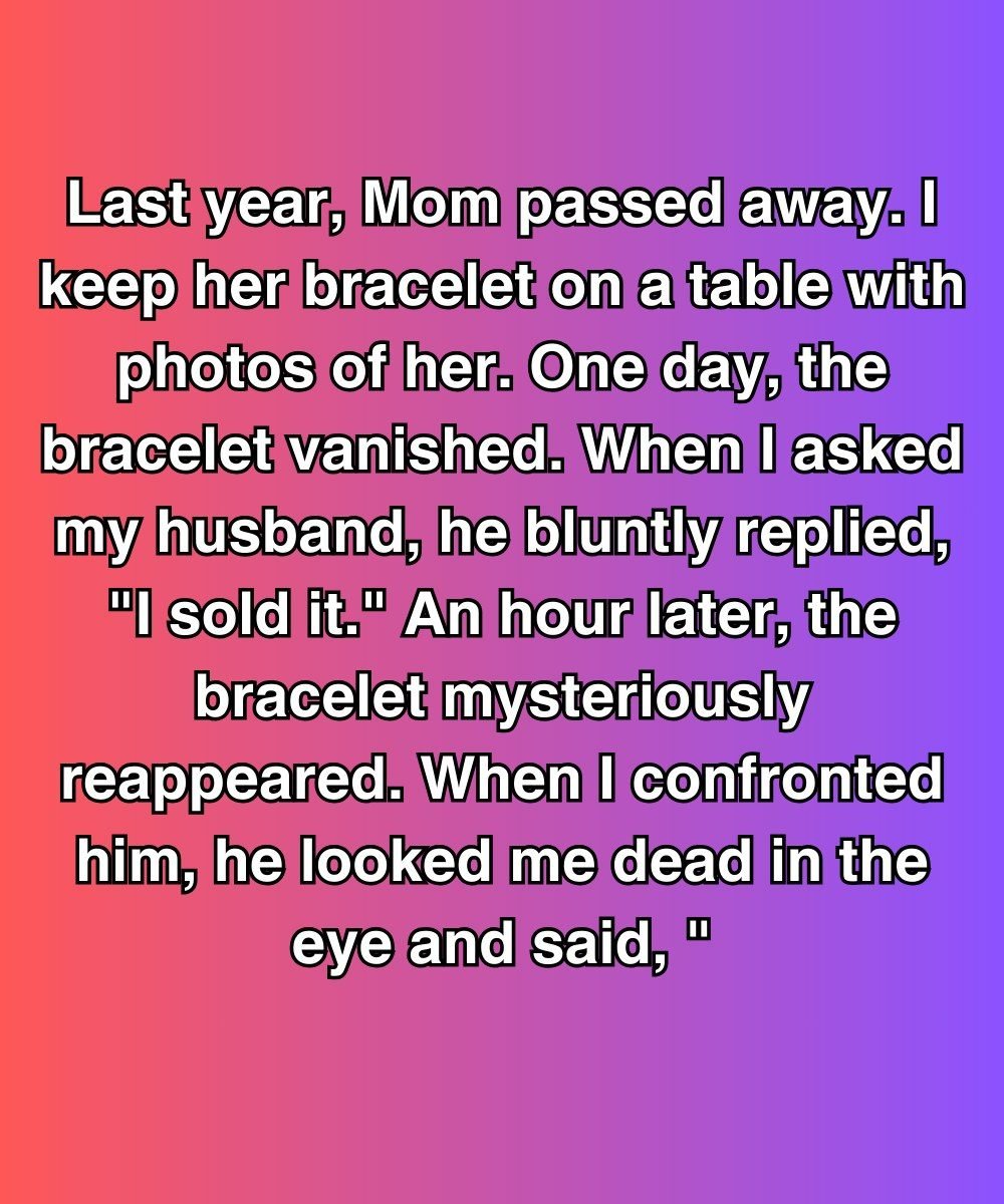 When I asked my husband, he bluntly replied, “I sold it.” An hour later, the bracelet mysteriously reappeared.