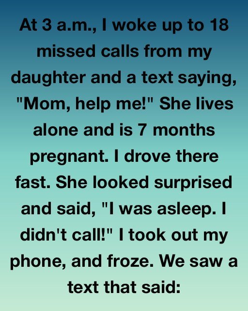 At 3 a.m., I woke up to 18 missed calls from my daughter and a text saying, “Mom, help me!” She lives alone and is 7 months pregnant. I drove there fast. She looked surprised and said, “I was asleep.