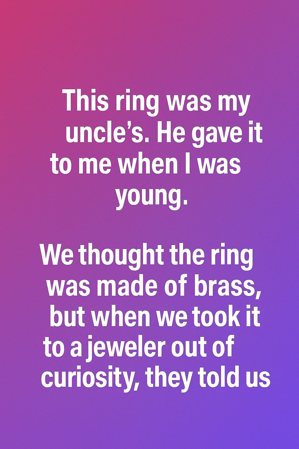 This ring was my uncle’s. He gave it to me when I was young. We thought the ring was made of brass, but when we took it to a jeweler out of curiosity, they told us it was solid gold — old, handcrafted, and surprisingly valuable.