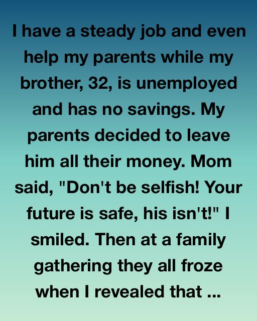 I have a steady job and even help my parents while my brother, 32, is unemployed and has no savings. My parents decided to leave him all their money. Mom said, “Don’t be selfish!