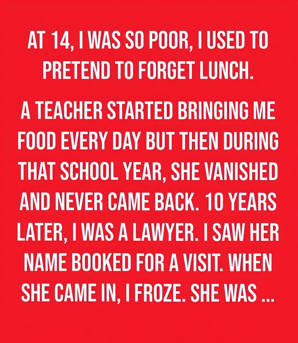 At 14, I was so poor I pretended I’d forgotten my lunch because admitting the truth felt unbearable. My mom worked nights at a dry cleaner, rent barely survived, and my dad had disappeared years earlier. I hid in the library during lunch—hungry, embarrassed—until Ms.