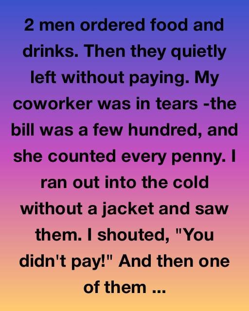 “2 men ordered food and drinks. Then they quietly left without paying. My coworker was in tears—the bill was a few hundred, and she counted every penny.