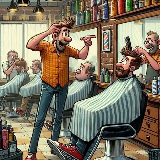 Barber goes, “What? What’s so funny?! Where’d he go??”